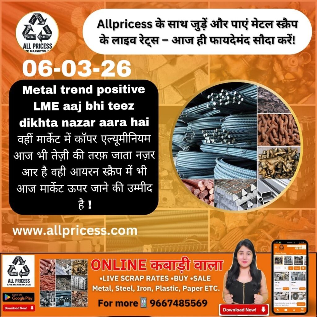 आज का मेटल रेट प्रेडिक्शन: आयरन स्क्रैप, कॉपर, एल्युमीनियम और स्टील का अनुमान Blog March 6, 2026 / 0 Comments