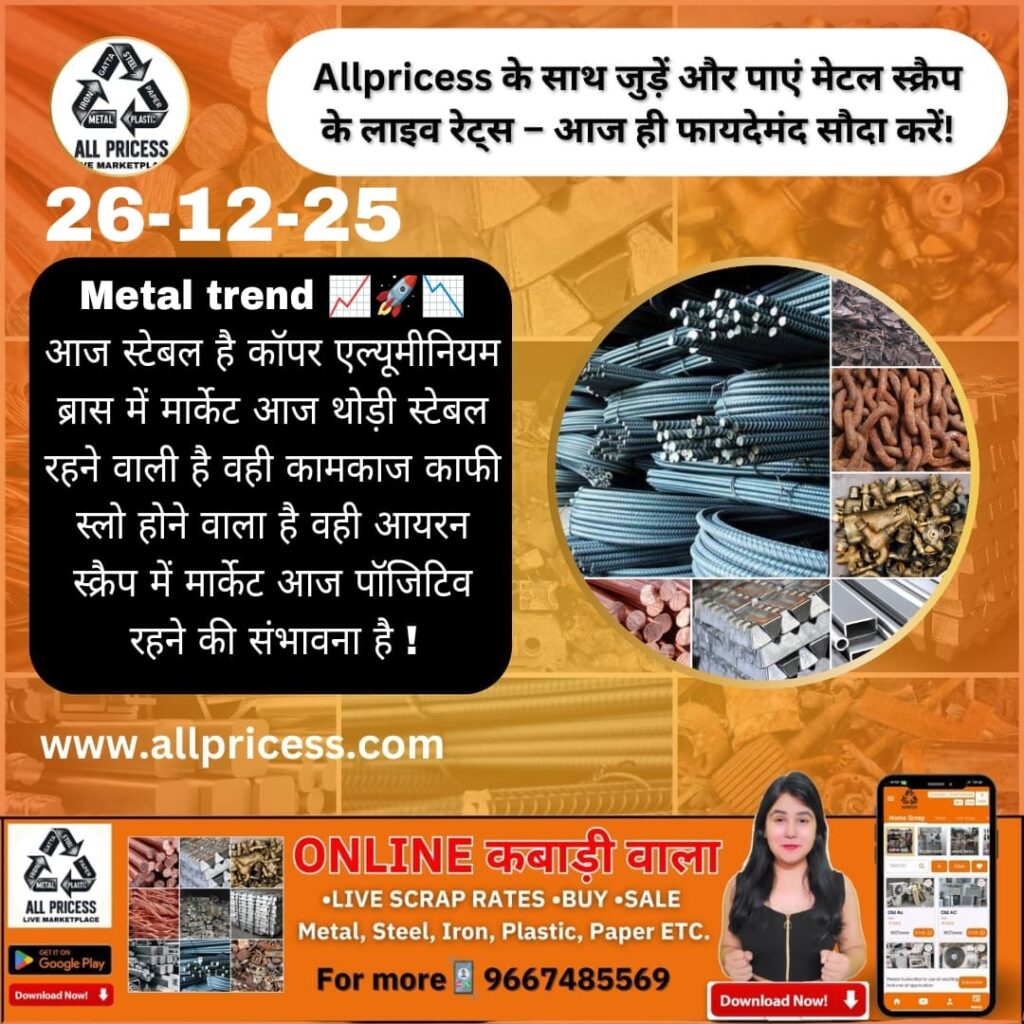 आज के मेटल स्क्रैप प्रेडिक्शन के अनुसार बाजार में संभावित रेट ट्रेंड और उतार-चढ़ाव